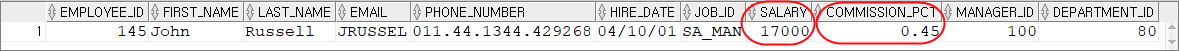 SET SALARY = 17000, COMMISSION_PCT = 0.45