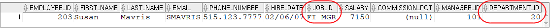 SET DEPARTMENT_ID = 20, JOB_ID = 'FI_MGR'