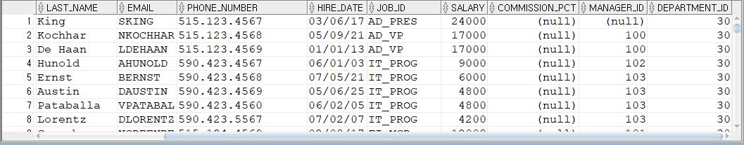 WHERE DEPTNO=30;
