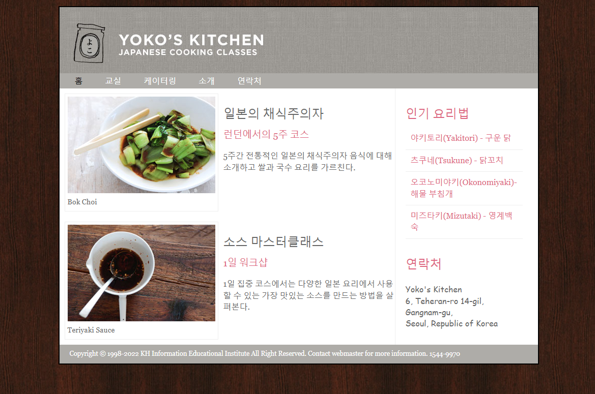 <p>5주간 전통적인 일본의 채식주의자 음식에 대해 소개하고 쌀과 국수 요리를 가르친다.</p>