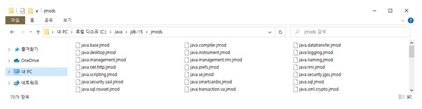 API는 jmods 파일 형태(모듈파일)로 저장되어있다.