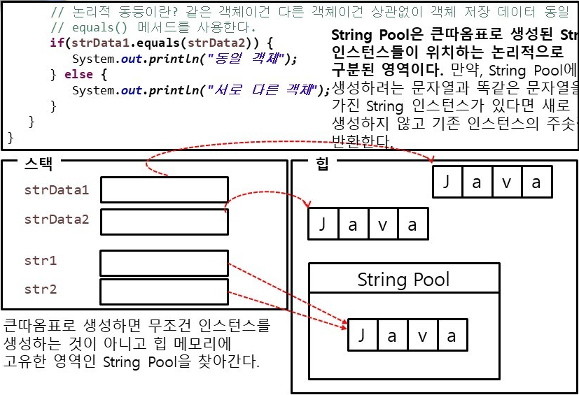 | String | intern() | 문자열을 상수 풀에 등록하고 이미 같은 문자열이 존재하면 해당 문자열의 참조값을 반환한다 |