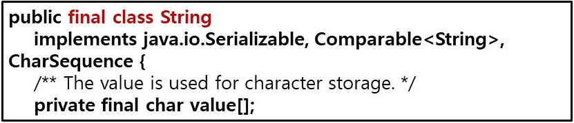 String 클래스에는 문자열을 저장하고자 문자형 배열 변수(char[]) value를 인스턴스 변수로 정의해 놓고 있다