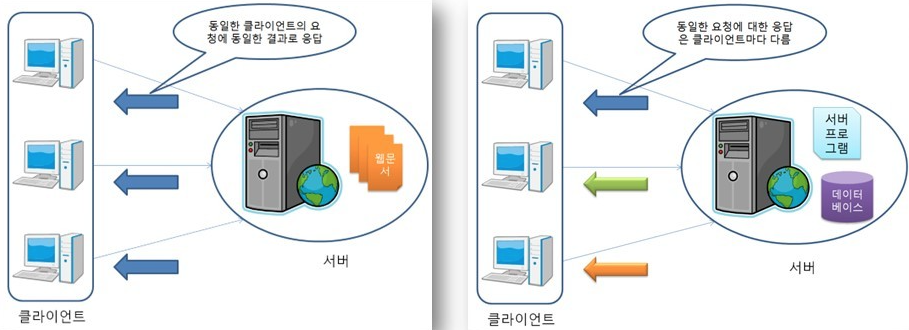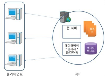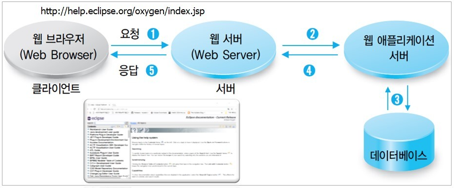 웹 브라우저가 있는 클라이언트가 자료를 요청(request)하면,